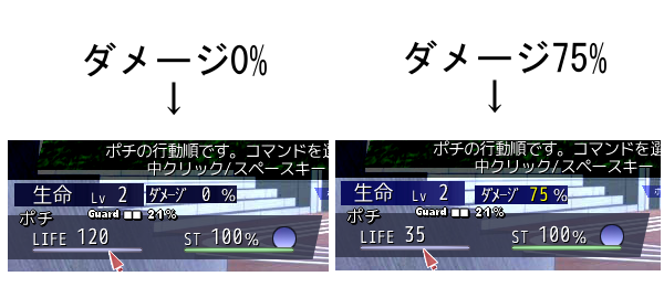 仕様について1.このユーザデータは1日のトレーニング後のタイミングにダメージ数値の判定をしています。自由行動の最中にダメージ値が変化してもその自由行動までの間は最大LIFE値は変化しません。探索等によって住居外で日にちが経過した場合も同様です。また、1日のトレーニング後ごとに判定をしているのでゲームのテンポに遅れをもたらします。
