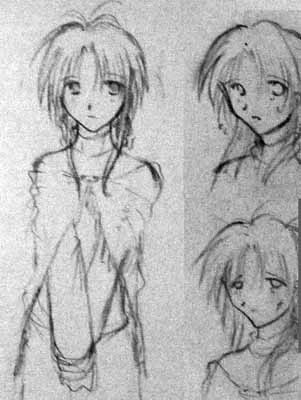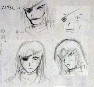 【10/8の内容】 ただいまリアル引っ越し作業の真っ最中で、 4日に渡って朝起きてから寝るまで延々と肉体労働の日々でした。 もうそろそろ終わります。さらば広島の家よ、8年間ありがとう。 で、それはそうと8年以上前に書いたヤバい黒歴史ノートとか設定画とか 色々出てきたので、気が向いたら公開するかもしれません。 いやーまさか授業中に友達と やり取りしたノートまで出てくるとは思いませんでした。 あの頃はアホだったと思う反面、文の書き方の基本も知らなかったので かえってぶっ飛んでた気がします。 ちなみにレジェレスがその黒歴史の集大成。 当時の私は、創作的な意味においてまちがいなく不良だと思いました。 世の中に逆行したい若さというか。 今はその気持ちをだいぶ失ってしまったので、 もっと反骨精神を養いたいなあ、という希望もあります。【ここから10/11の内容】 ということでようやく引っ越しが終わって 穏やかな住まいに戻って参りました。 黒歴史ノート集は某クロネコさんに運んでもらってる最中なので まだ届いていませんが、現地で撮影した資料がいくつかあるので大公開!<初期原案シーナ ラフ> 2001年前 頃の資料 シルフェイド見聞録用にデザインしていた最中のシーナです。 「病気ゆえ、あまり人と関わるつもりのないキャラクター」 としての初期案。 9割方、今のシーナと同じですが、初期案では左の顔を 基本の表情にしようと考えていたので、それに比べると、 今のバージョンのはずいぶん愛想がいい顔になっていますね。 今のバージョンは「先も短いから前向きに生きよう」 と達観してるバージョンです。 ただし、寂しい表情でなくなった代わりにゲ■機能が搭載されました。 今はもう珍しくなくない「ゲロイン」ですが、当時はいっぱい考えて考えて、 どうすれば人の印象に残るキャラクターになるかって必死だったんですよ。<初期原案幻想譚アルバート ラフ> 2003年頃の資料 幻想譚になって、「大人になったアルバート」として 登場するときの顔グラフィックをどうするか考えてたときのラフです。 「なんでゲッソリしてんの」とか「何このヒゲ」とか、見た瞬間は ちょっと面白かったのでデジカメで撮ってました。 残りも少しあるんですが、それはまた次回で! 以下は気になった拍手コメントの返信です。 ▼追記を開く▼
