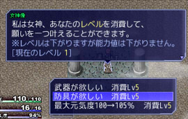 女神像、これまでは「筋力アップ」や「魅力アップ」などのメニューが