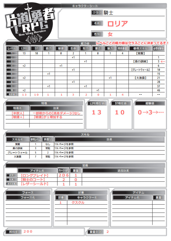 <キャラクターシートの例。これは「騎士」のシートです> クリックで拡大