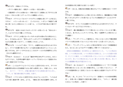 ゲームバランスに関わる話や開発そのものに関わる話など