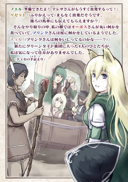 <物語の舞台> それは6人の旅人が『闇』に立ち向かった冒険の時代から8年ほど後のこと。 世界を覆わんとする『闇』の脅威が人知れず討ち払われた後の、遠い大陸でお話が始まります。 今は『旅団』が世界を駆けめぐる時代。 『旅団』は数名から数十名で構成されており、冒険や護衛、ときには行商を行いながら遙かなる大地を、そして時には海を横断して旅をしています。 プレイヤーキャラクターたちが参加する『グリーンタイド旅団』もそんな旅団の一つです。 そして『旅団』の真価は、街で暮らす人たちには想像も付かないような【新たな大地・街・島・世界】を旅すること! ときにはとんでもない場所に迷い込むこともあるでしょう。 場所によっては蒸気機関なるものがあるかもしれません。 機械の人間だけが住む帝国がどこかにあるかもしれません。 魔法が存在しない地域があるかもしれません。 不思議な扉を通じて別世界に飛び込むこともあるかもしれません。 旅団の長老でさえ、この世界は未知だらけなのです。 そんな中、様々な大地へと旅をするのがこの『旅団世界TRPGリプレイ』の物語! さあ、次の行き先にはどんな冒険が待っているのでしょうか? それは神とサイコロと旅人の足だけが知っています……。 ![]() |